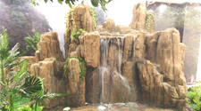 塑造室內外假山石:大型假山瀑布、噴泉,室內外千層石、假山石、奇形藝石等各種山石工程。